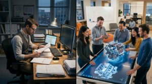 Geleneksel ürün geliştirme süreçlerinde tasarım, simülasyon ve fiziksel test aşamaları genellikle birbirinden bağımsız ilerler. Bu durum, ekipler arasında veri kopukluklarına, versiyon karmaşasına ve gecikmelere yol açar. CATIA V+R yaklaşımı ise bu parçalı yapıyı ortadan kaldırarak tüm süreci entegre ve sürekli bir akış haline getirir. Dijital ortamda yapılan her geliştirme, fiziksel testlerden elde edilen verilerle beslenir ve anlık olarak güncellenir.